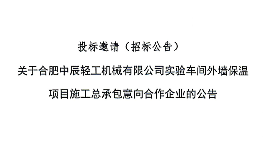 Notice of Invitation for Intended Collaboration with the Construction General Contractor for the Exterior Wall Insulation Project of the Experimental Workshop of Hefei Zhongchen Light Industry Machinery Co., Ltd.