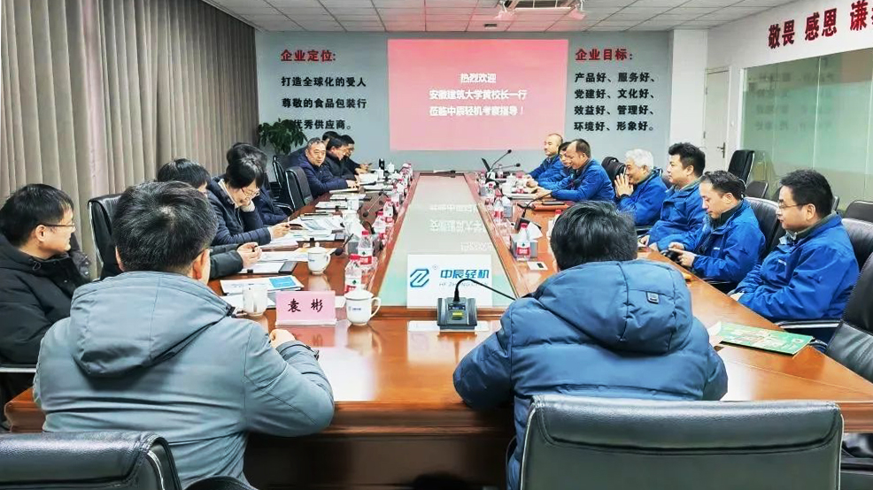 The President of Anhui Jianzhu University, Huang Xianhuai, and his delegation paid a visit to Zhongchen Light Industry Machinery for project matching and academic exchange on industrial-academic cooperation.